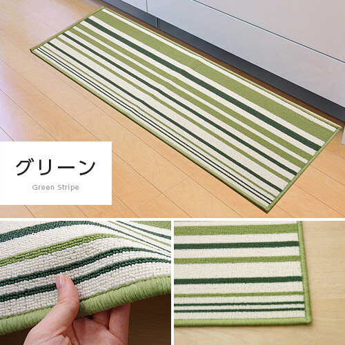 商品について シンプルなボーダー柄の洗えるキッチンマットです。