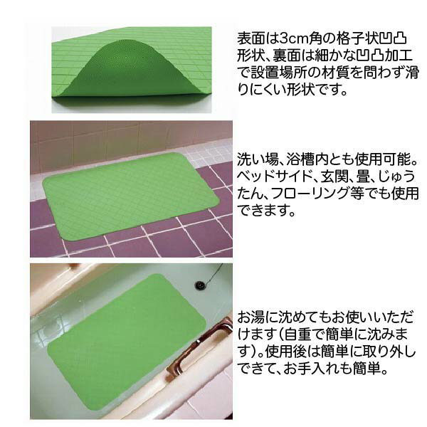・表面は3cm角の格子状凹凸形状、裏面は細かな凹凸加工で設置場所の材質を問わず滑りにくい形状です。