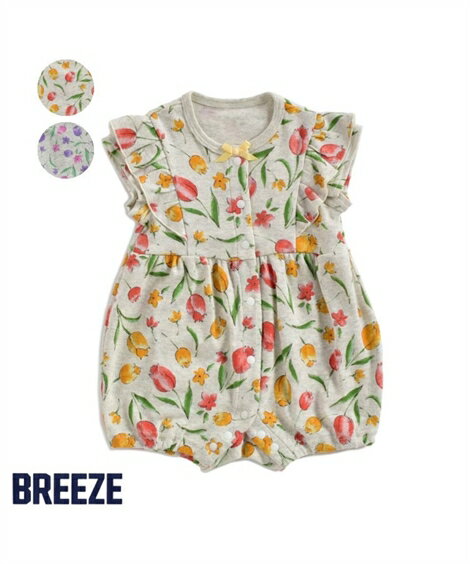 BREEZE ブリーズ チューリップ柄 ロンパス オフホワイト/グレー 身長60/70/80cm ニッセン