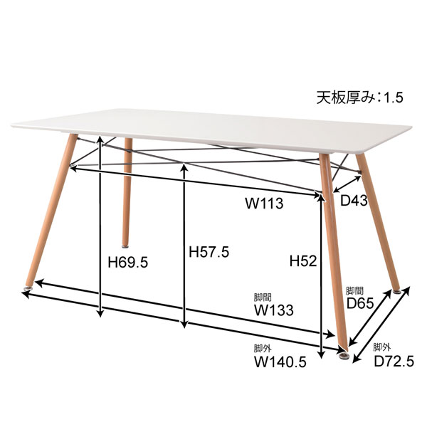 item spec サイズ ■W=1,500×D=800×H=720mm 材質 ■繊維板・天然木(ビーチ)・ラッカー塗装 ■スチール(粉体塗装) 色 ■ 商品説明 ■重量:22kg ■脚部:アジャスター付き ■お客様組立品・輸入品 ■梱包サイズ:W=1,550×D=870×H=110mm ■梱包重量:26kg シンプルでデザイン性のある角型テーブルで、お部屋をシンプルにお洒落に演出。